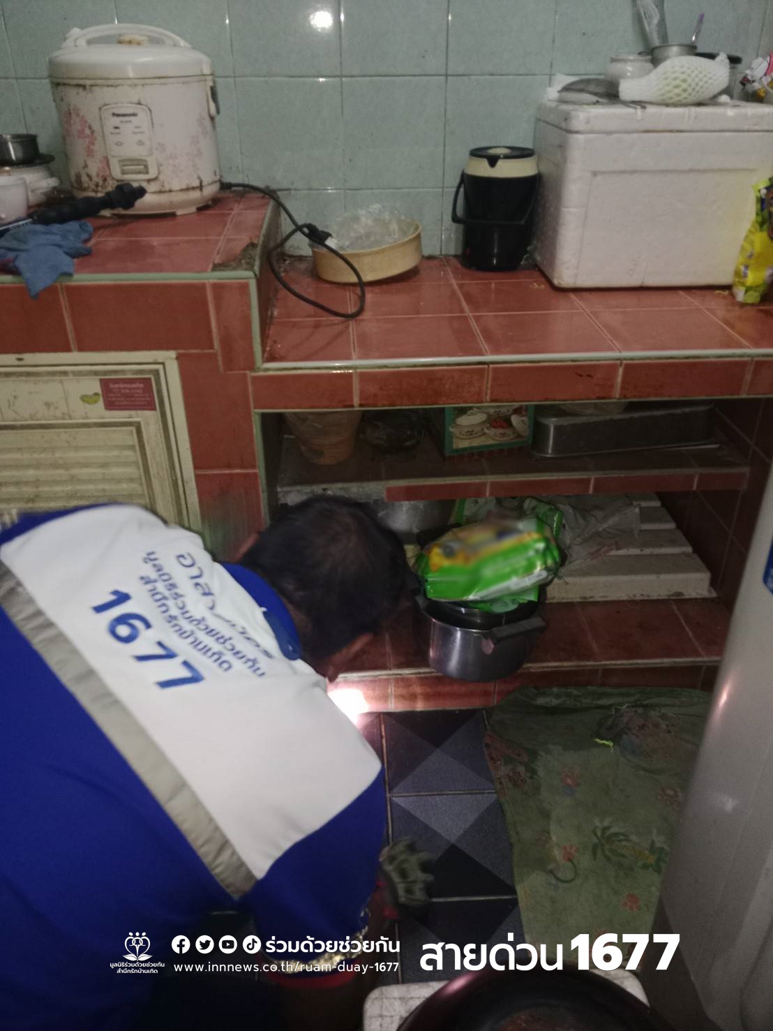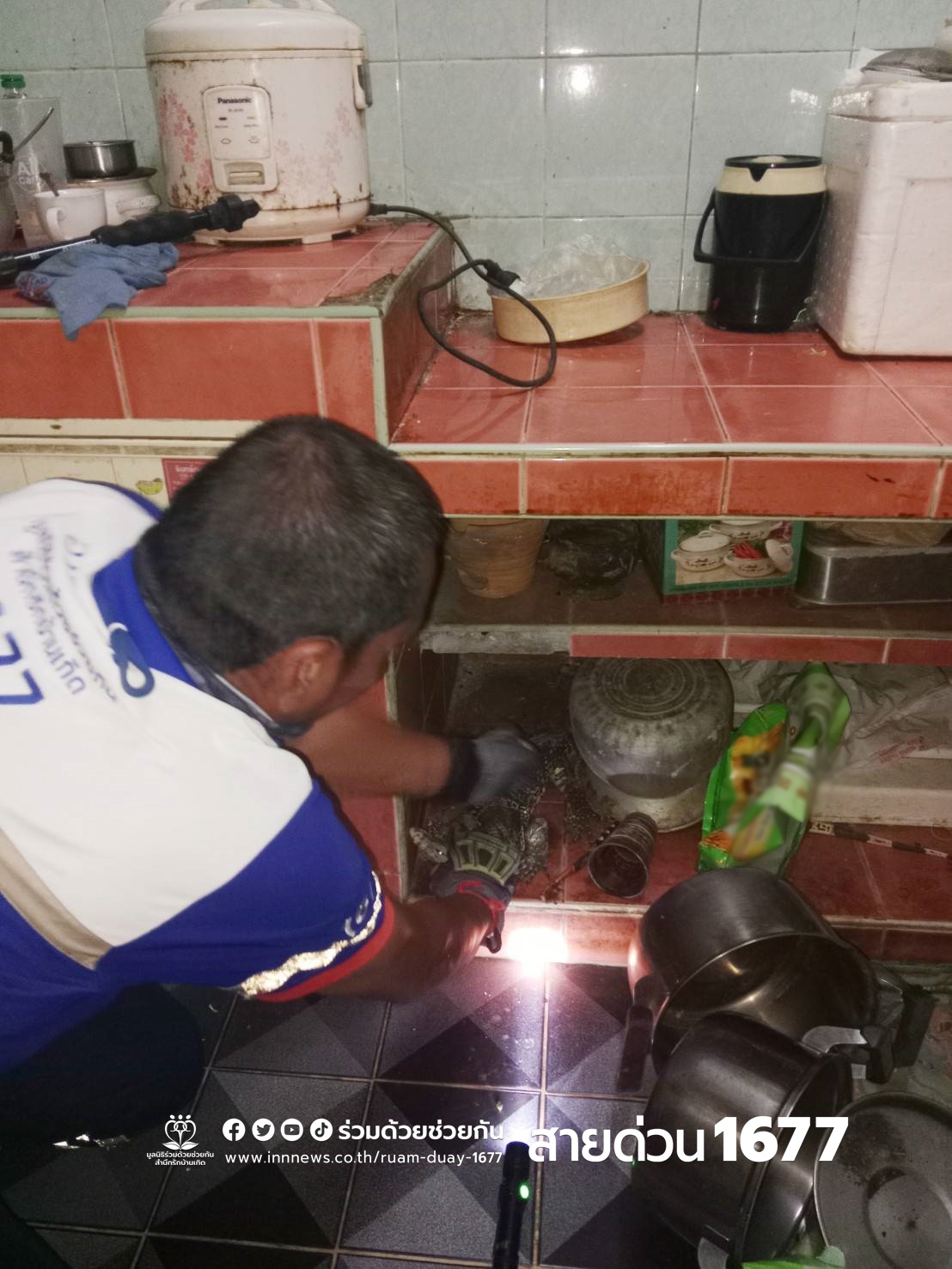 ตรวจสอบพบตัวเงินตัวทองซ่อนตัวตามซอกตามมุมในห้องครัว อาสาจึงช่วยจับดึงตัวออกมาได้สำเร็จ ก่อนนำไปปล่อยคืนสู่ธรรมชาติต่อไป