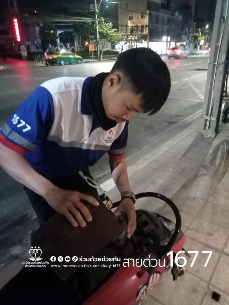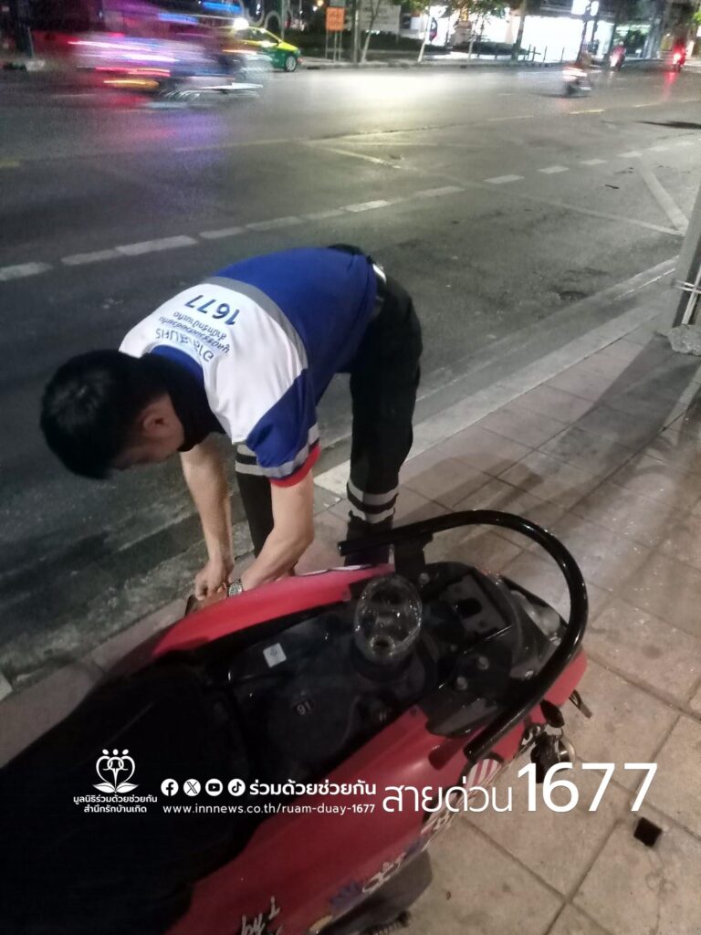 อาสาร่วมด้วยฯ ช่วยรถจักรยานยนต์น้ำมันหมด ถนนวิทยุ แขวงลุมพินี เขตปทุมวัน กรุงเทพฯ