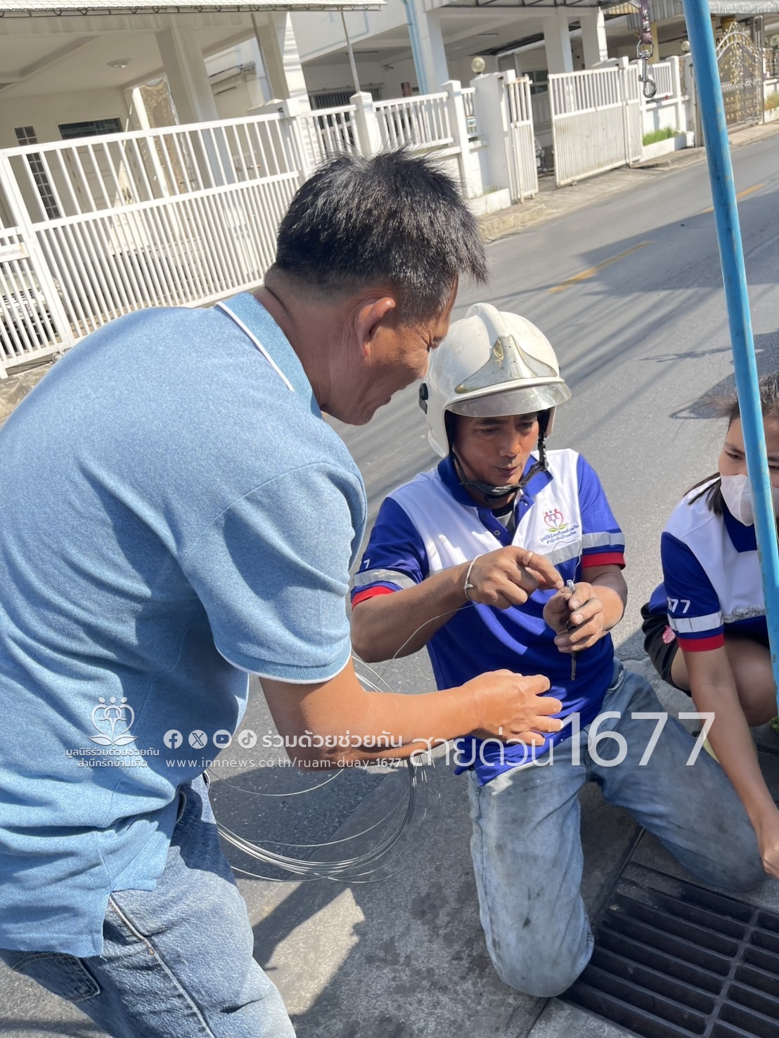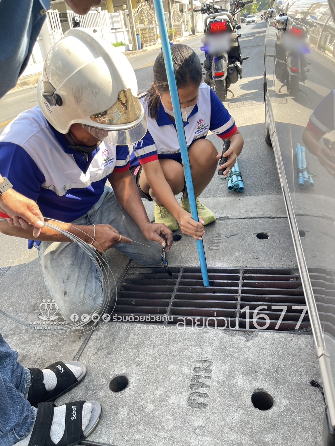 ศูนย์สื่อสารร่วมด้วยช่วยกัน ประชาสัมพันธ์อาสาใกล้เคียงให้การช่วยเหลือ อาสาร่วมด้วย 247 , 248 และ 321 รับดำเนินการ ไปให้การช่วยเหลือใช้ท่อ PVC ผูกเชือก หย่อนลงไปในท่อระบายน้ำ คล้องกุญแจรีโมทขึ้นจากท่อระบายน้ำได้สำเร็จ