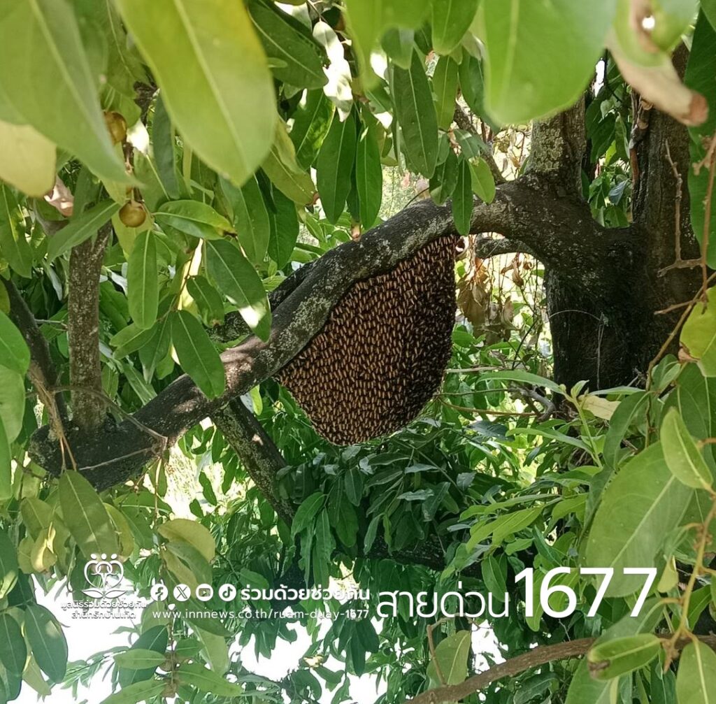ผวา! ผึ้งทำรังอยู่บนต้นไม้ใกล้อาคารเรียน แจ้งอาสาร่วมด้วยช่วยกำจัด