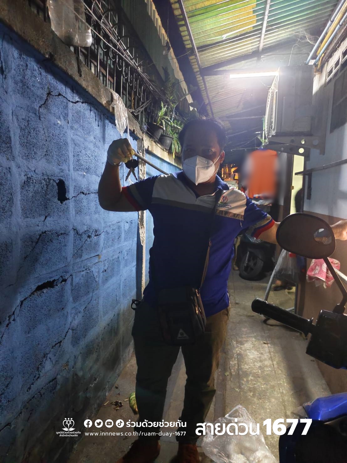ตรวจสอบพบเจ้าของพวงกุญแจ ยืนรอขอความช่วยเหลืออยู่ อาสาจึงช่วยค้นหาจนพบ นำอุปกรณ์เกี่ยวดึงพวงกุญแจขึ้นมาจากท่อได้สำเร็จ มอบให้เจ้าของเรียบร้อย