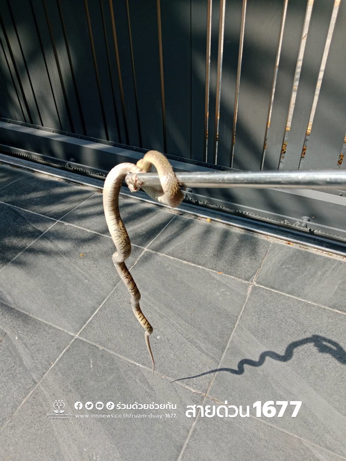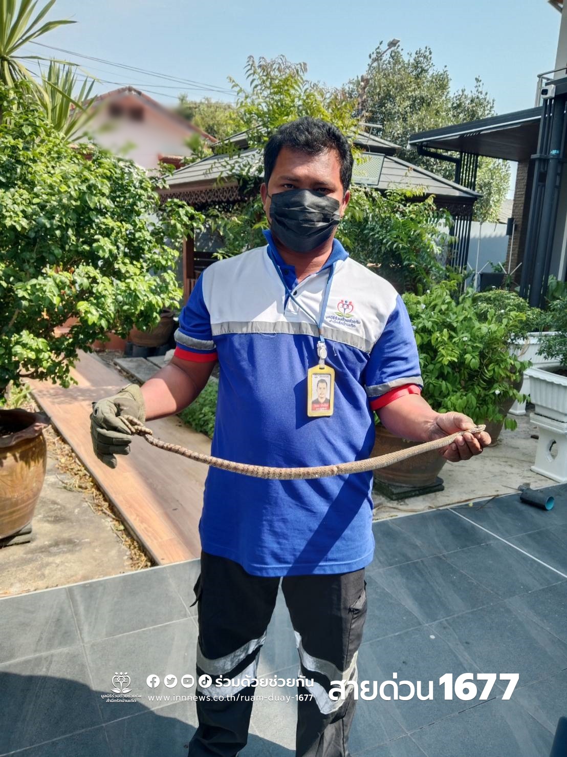 อาสาร่วมด้วยช่วยกันจึงเดินทางเข้าไปตรวจสอบ พบรถจอดอยู่หน้าบ้าน ที่ห้องเครื่องรถยนต์พบงูสิงซุกตัวอยู่ จากนั้นอาสาจึงได้ช่วยกันนำอุปกรณ์บ่วงคล้องดึงตัวงูออกมาได้สำเร็จ ก่อนนำไปปล่อยคืนสู่ธรรมชาติ