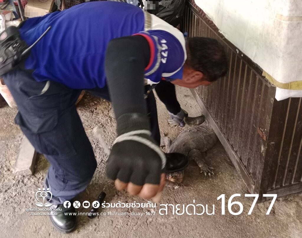 อาสาร่วมด้วยคุ้มภัย 006 ได้เข้าตรวจสอบพบเป็นตัวเงินตัวทองจำนวน 1 ตัว ความยาวประมาณ 2 เมตร หลบซ่อนตัวอยู่ใต้ตู้หน้าบ้านพัก จึงได้นำอุปกรณ์เข้าช่วยเหลือ ทำการจับดึงตัวออกมาได้เป็นผลสำเร็จ และนำไปปล่อยคืนสู่ธรรมชาติเป็นที่เรียบร้อย พื้นที่สน.บางชัน