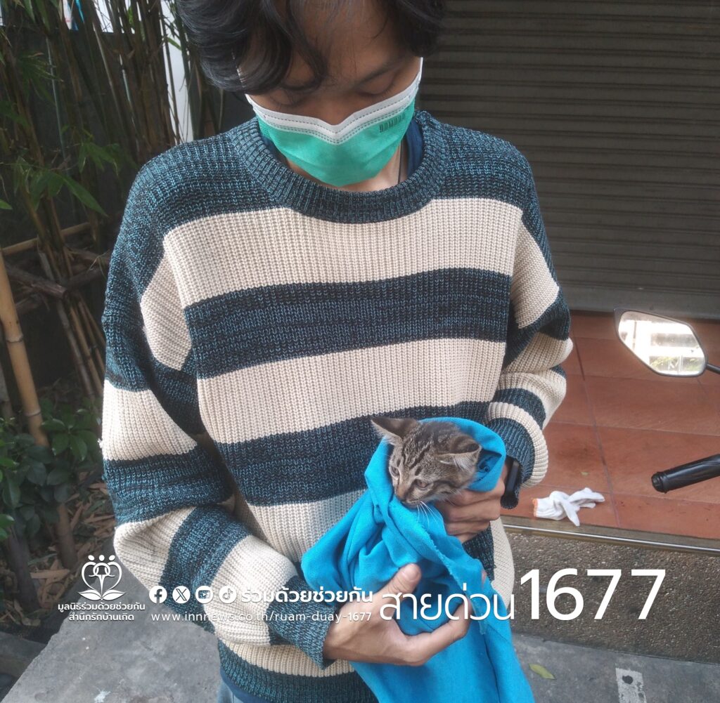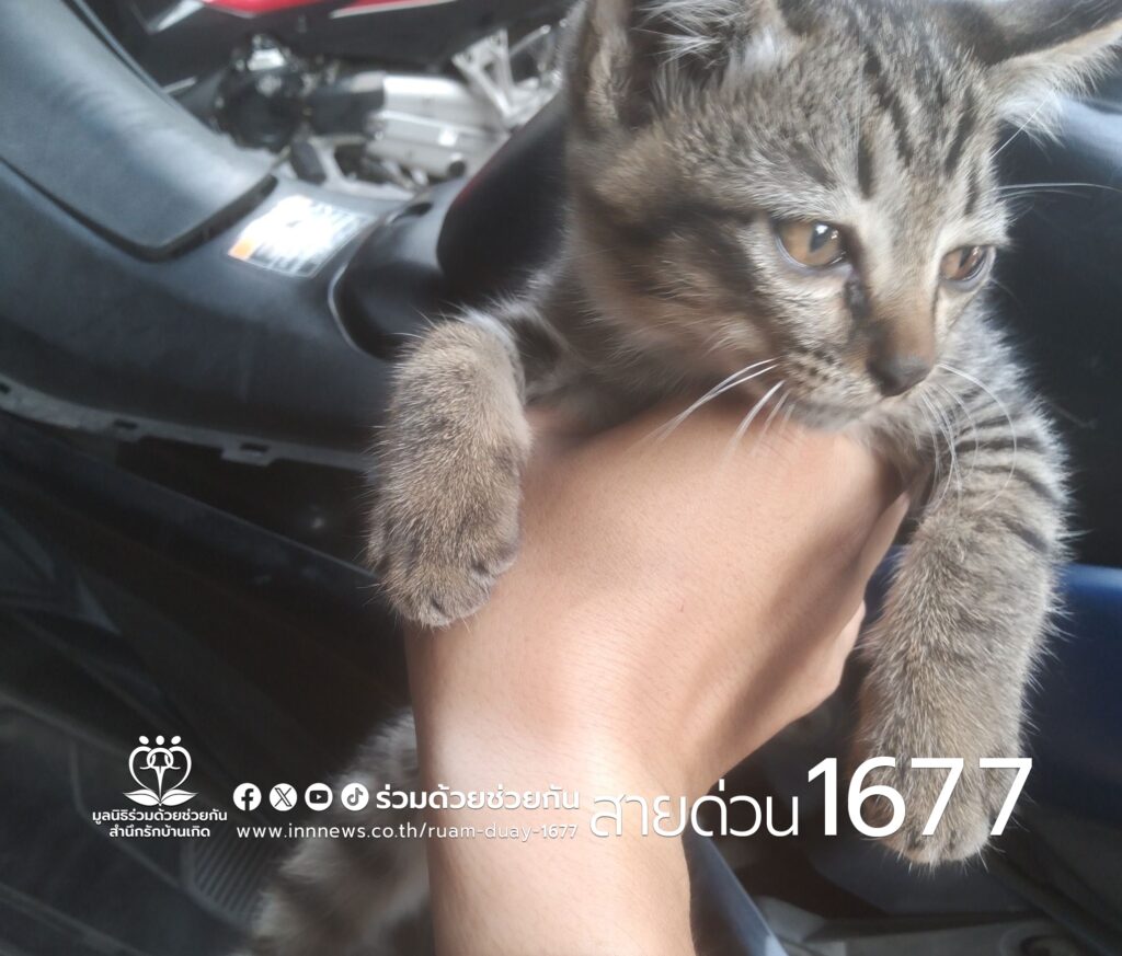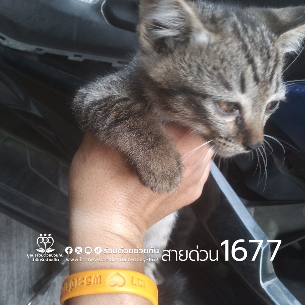 เหมียวน้อยจอมซน เข้าไปติดอยู่ในรถจยย. โทร.1677 ร่วมด้วยช่วยกัน ประสานอาสาเข้าช่วยเหลือ