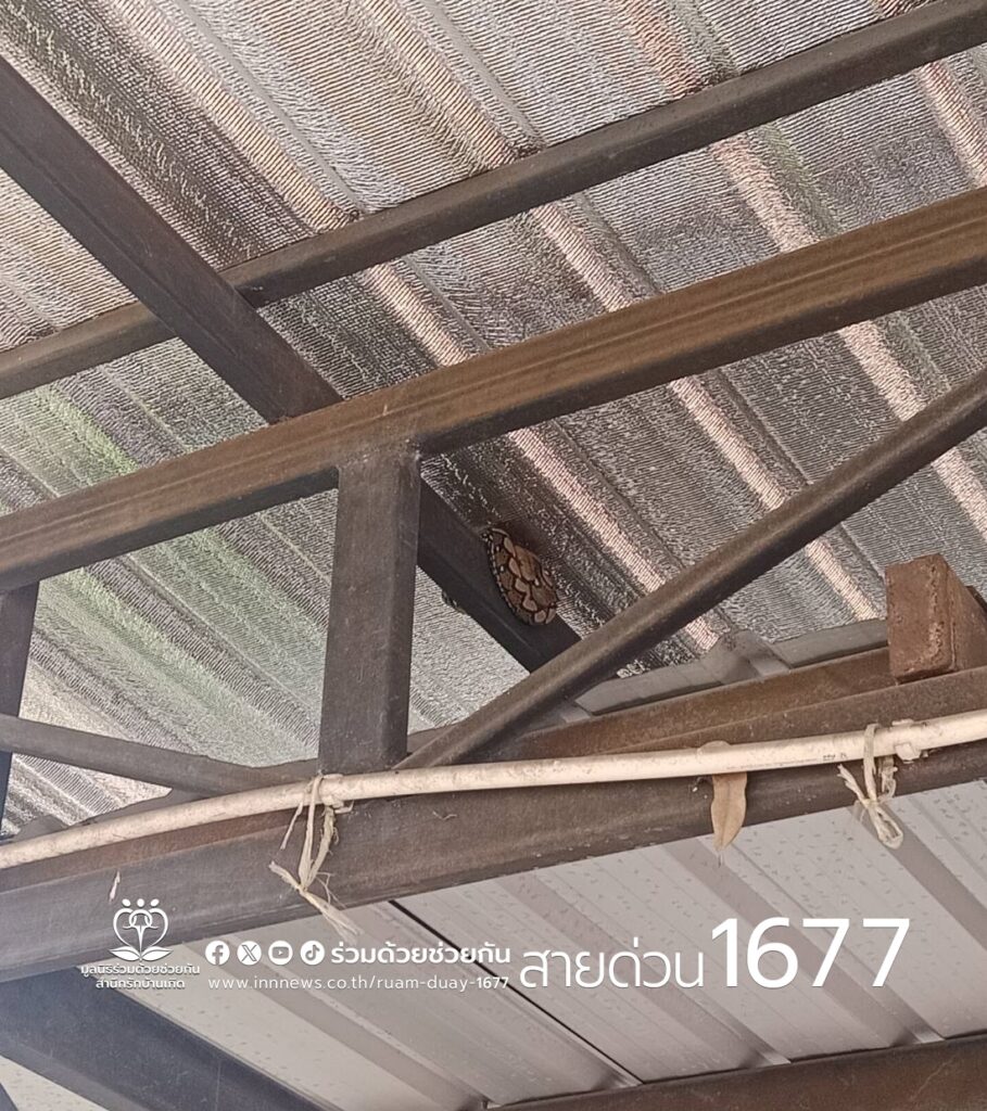งูเหลือมซ่อนตัวอยู่บนคานใต้หลังคา ถ.รามอินทรา อาสาร่วมด้วยเร่งช่วยเหลือ