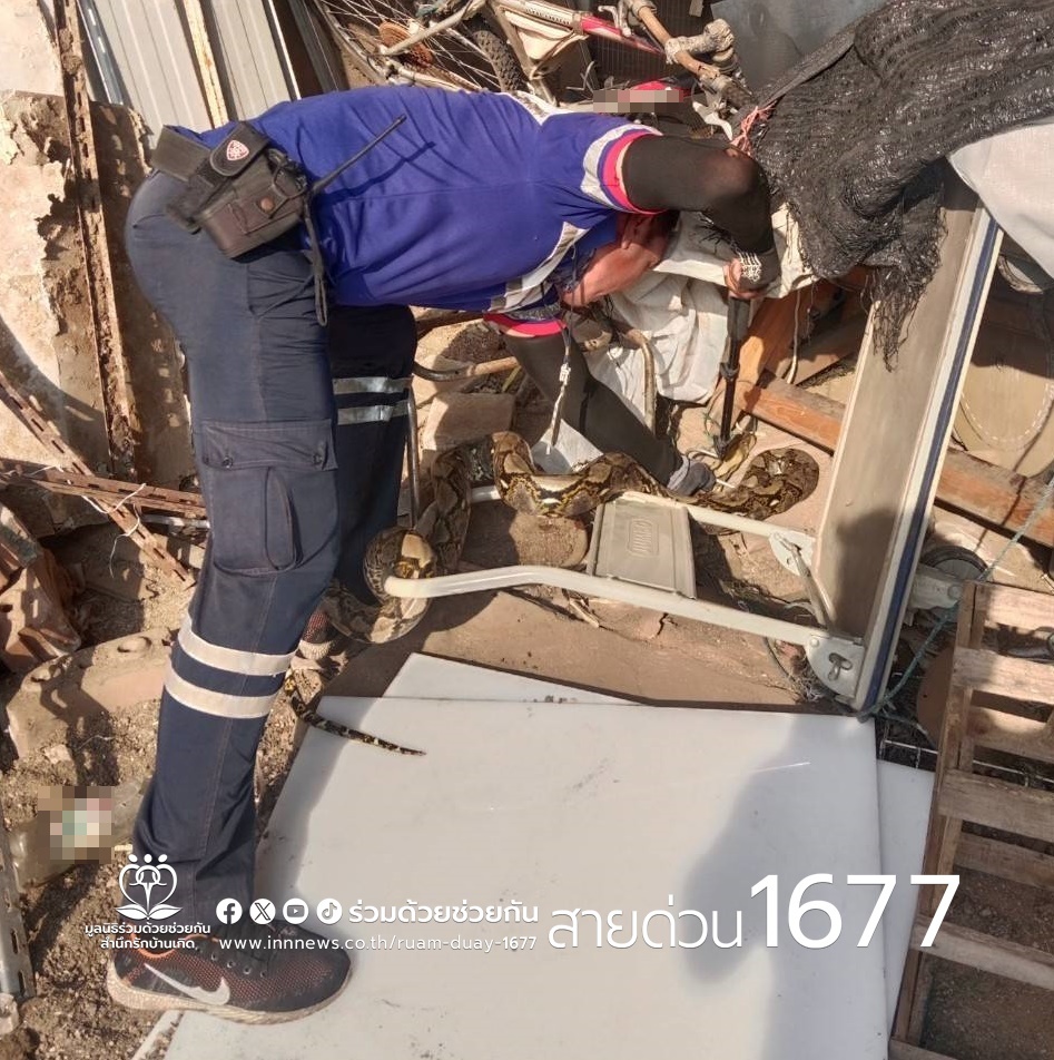 ประชาชนขอความช่วยเหลือ มีงูเหลือมติดตาข่ายบริเวณบ้านพัก ถ.คู้บอน ซอย 27 อาสาร่วมด้วยเร่งช่วยเหลือเป็นที่เรียบร้อย