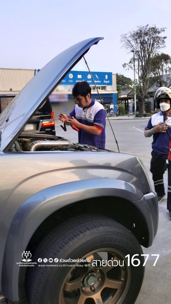 อาสาร่วมด้วยฯ ช่วยเหลือรถกระบะแบตเตอรี่หมด ภายในปั๊มน้ำมันปตท. ถนนประดิษฐ์มนูธรรม
