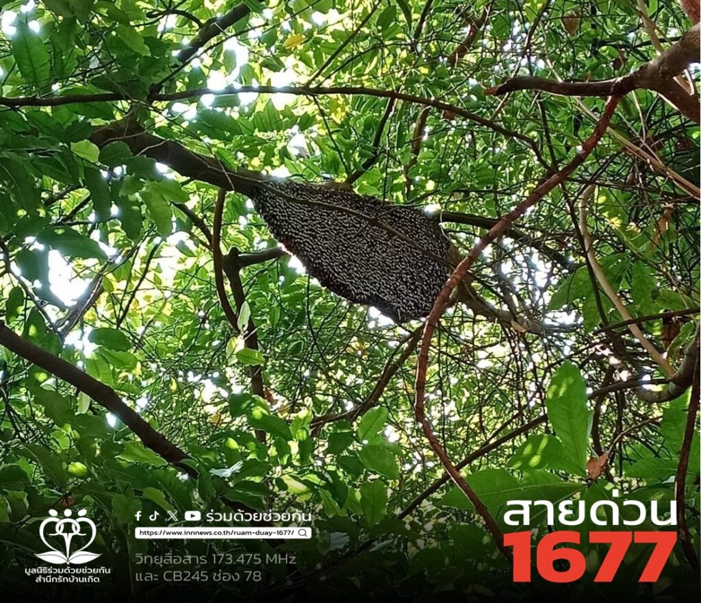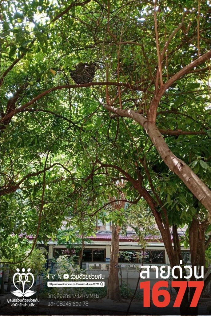 ผวา! ผึ้งทำรังอยู่บนต้นไม้ภายในโรงเรียน แจ้งอาสาร่วมด้วยช่วยกำจัด