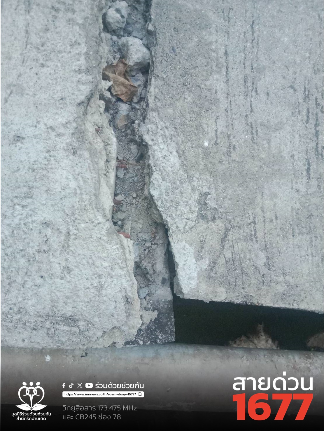 สะพานทางเดินริมคลองขันแตก ถนนสุขาภิบาล 2 ทรุดตัว : อาสาร่วมด้วยนครินทร์ 26 แจ้งสะพานทางเดินริมคลองทรุดตัว จุดเกิดเหตุ สะพานทางเดินริมคลองขันแตก สุขาภิบาล 2 ซอย 21 ถนนสุขาภิบาล 2 แขวงดอกไม้ เขตประเวศ กรุงเทพฯ เกรงจะเกิดอันตรายกับผู้ใช้เส้นทาง ศูนย์สื่อสารร่วมด้วยช่วยกัน ประสาน ศูนย์อัมรินทร์ กรุงเทพมหานคร รับเรื่อง แจ้งหน่วยงานที่เกี่ยวข้องตรวจสอบ ภาพและข้อมูล : อาสาร่วมด้วยนครินทร์ 026