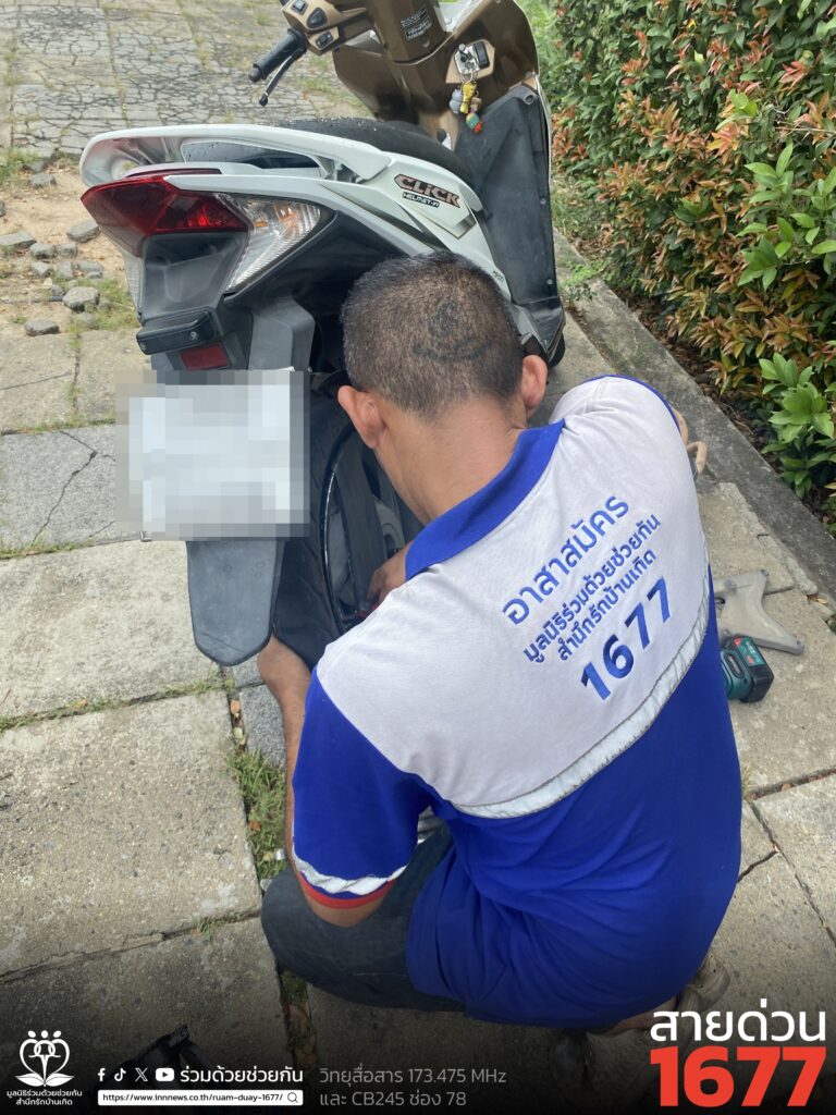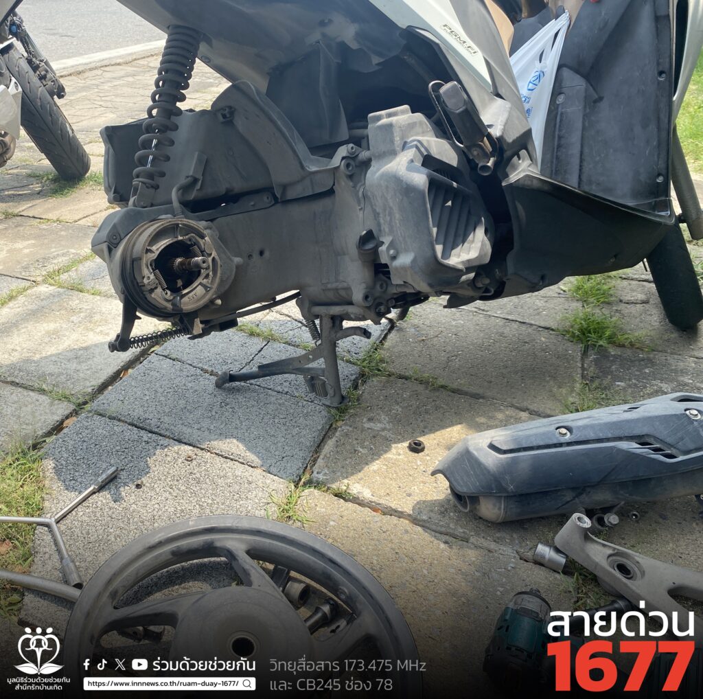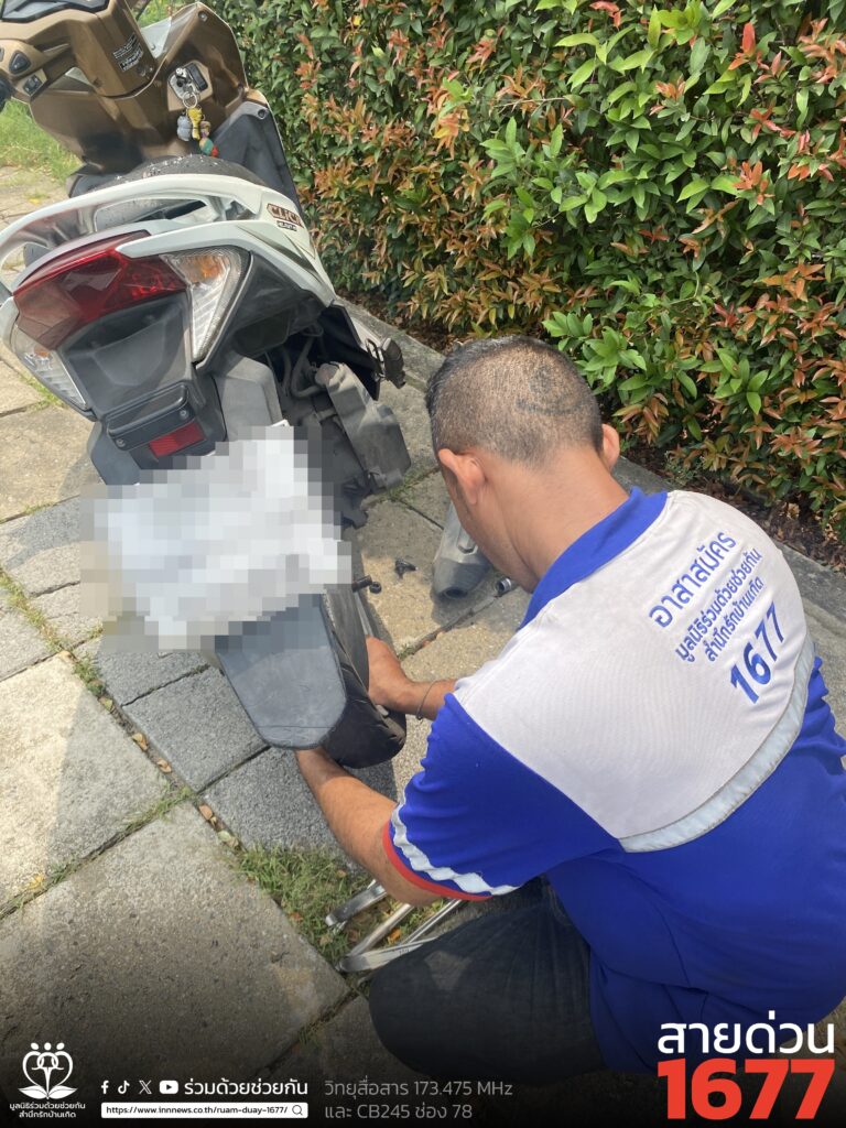 อาสาร่วมด้วยช่วยกัน รับแจ้งจากประชาชนขอความช่วยเหลือรถจอดเสีย ล้อยางหลังแตก เป็นรถจักรยานยนต์ฮอนด้า คลิก สีขาว จอดอยู่ถนนคู่ขนานมอเตอร์เวย์ สาย 7 ขาเข้า บริเวณกิโลเมตรที่ 1 เขตประเวศ กรุงเทพฯ