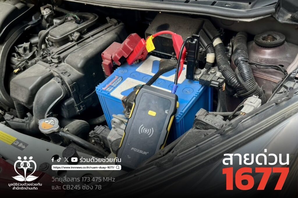 คุณกาญจนา ขอความช่วยเหลือรถแบตเตอรี่หมด เป็นรถเก๋งนิสสัน สีแดง ภายในซอยลาดพร้าว 78 ถนนลาดพร้าว แขวงวังทองหลาง เขตวังทองหลาง กรุงเทพฯ ศูนย์สื่อสารร่วมด้วยช่วยกัน ประสาน อาสาร่วมด้วย 321 ดำเนินการใช้อุปกรณ์พ่วงแบตเตอรี่ได้สำเร็จ รถสตาร์ทติดขับต่อไปได้