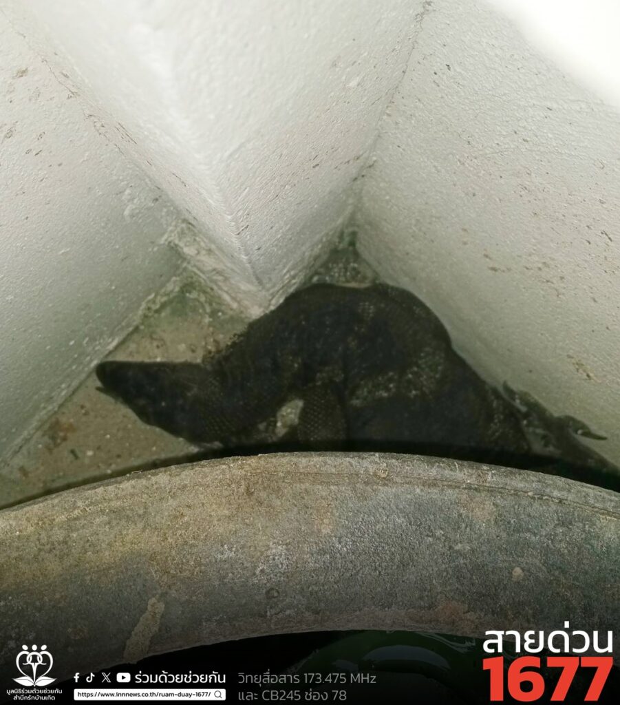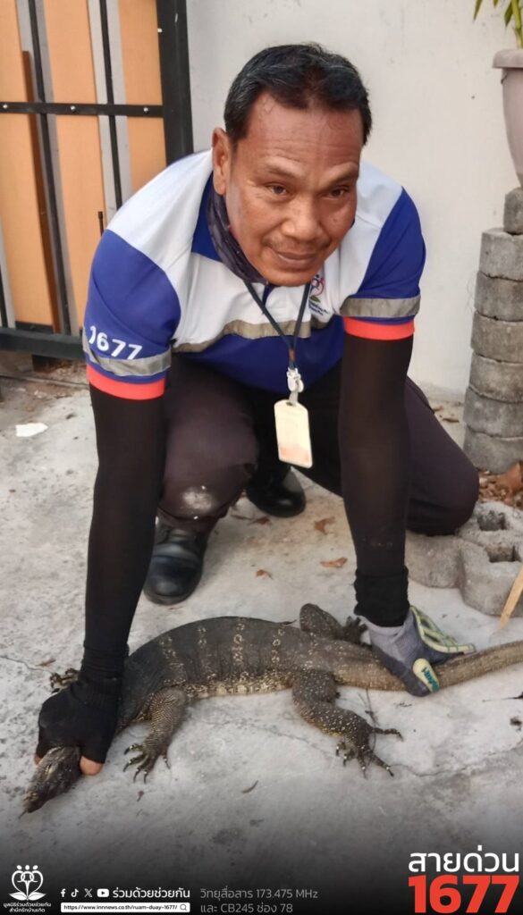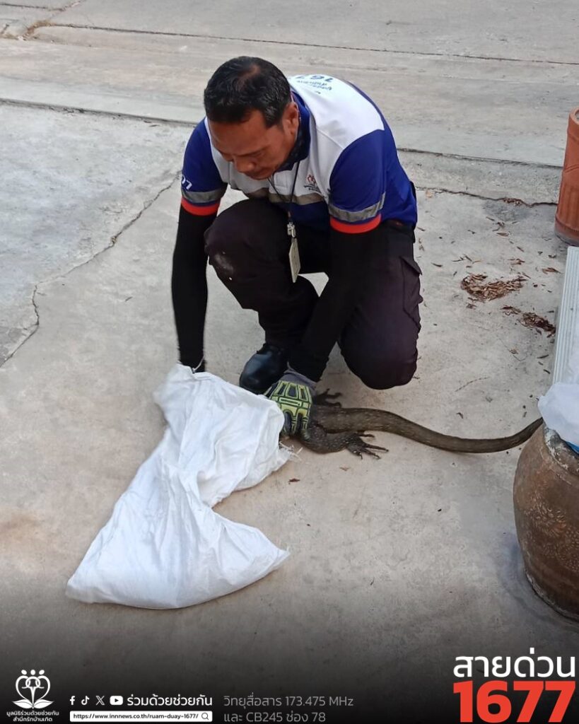 อาสาร่วมด้วยคุ้มภัย 006 ได้เข้าตรวจสอบพบเป็นตัวเงินตัวทองจำนวน 1 ตัว ความยาวประมาณ 1 เมตร อยู่บริเวณข้างอ่างบัวหน้าบ้านพัก จึงได้นำอุปกรณ์เข้าช่วยเหลือ ทำการจับตัวนำออกมาได้เป็นผลสำเร็จ และนำไปปล่อยคืนสู่ธรรมชาติเป็นที่เรียบร้อย พื้นที่ สน.บางชัน