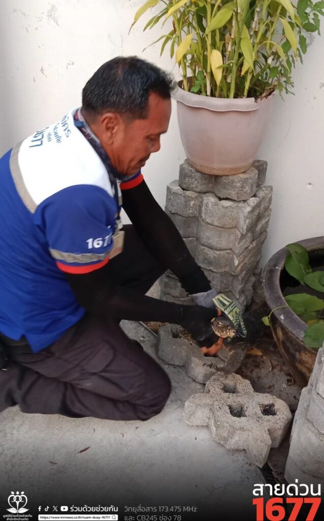 อาสาร่วมด้วยช่วยกัน รับแจ้งจากประชาชนขอความช่วยเหลือจับสัตว์เลื้อยคลาน อยู่บริเวณหน้าบ้านพัก ถนนพระยาสุเรนทร์ ซอย 20 แขวงบางชัน เขตคลองสามวา กรุงเทพฯ