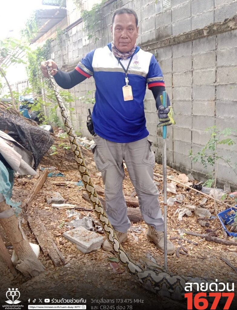 อาสาร่วมด้วยช่วยกัน รับแจ้งจากประชาชนขอความช่วยเหลือจับสัตว์เลื้อยคลาน อยู่ในกรงไก่ชน ถนนรามอินทรา ซอย 33 แขวงอนุสาวรีย์ เขตบางเขน กรุงเทพฯ