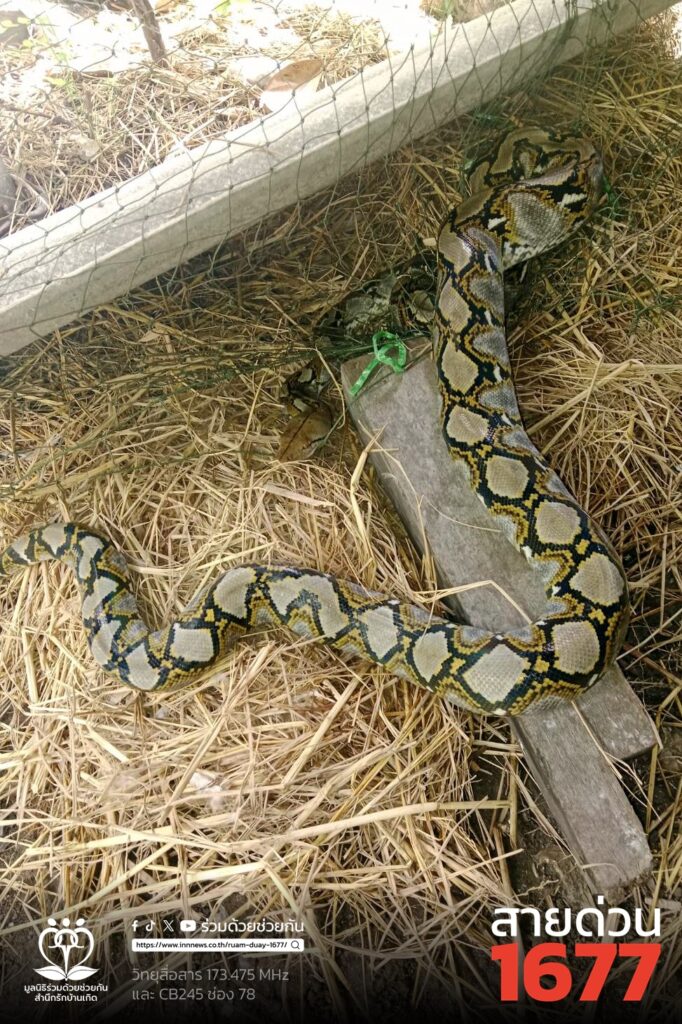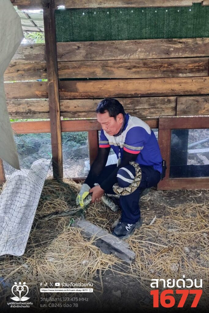 อาสาฯจับงูติดตาข่ายข้างเล้าไก่