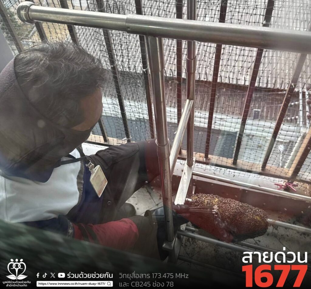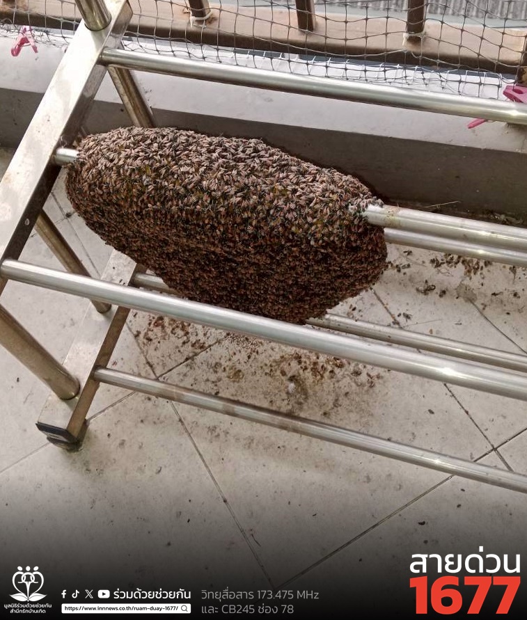 อันตราย! ผึ้งทำรังอยู่ราวตากผ้า แจ้งอาสาร่วมด้วยช่วยกำจัด