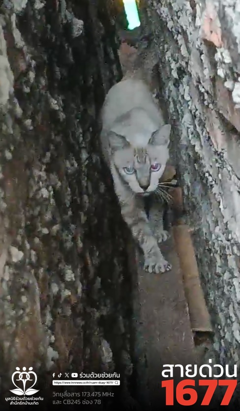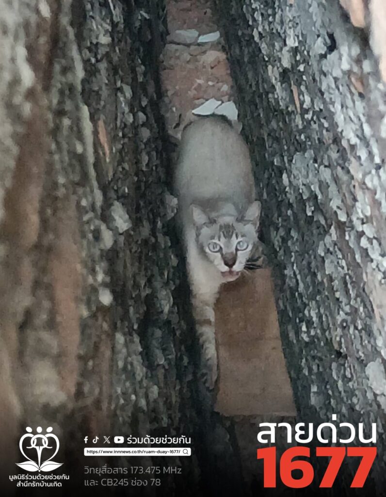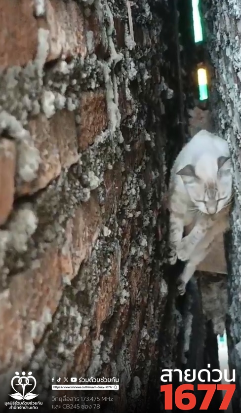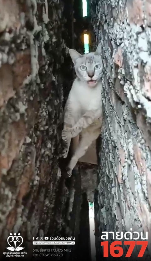 แมวถูกแมวตัวอื่นไล่ ตกไปติดซอกตึก ซอยสุขสวัสดิ์ 26 ได้รับการช่วยเหลือแล้ว