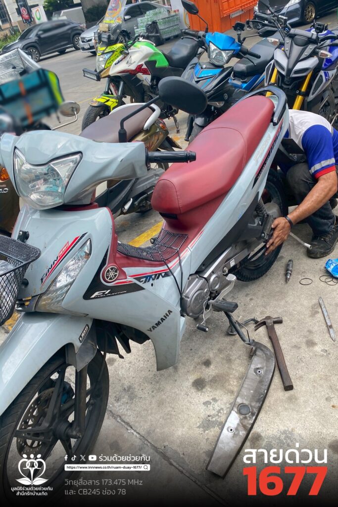 อาสาร่วมด้วยฯ ช่วยเหลือรถจักรยานยนต์ยางแตก ภายในปั๊มบางจาก ถนนพระราม 9 ซอย 43