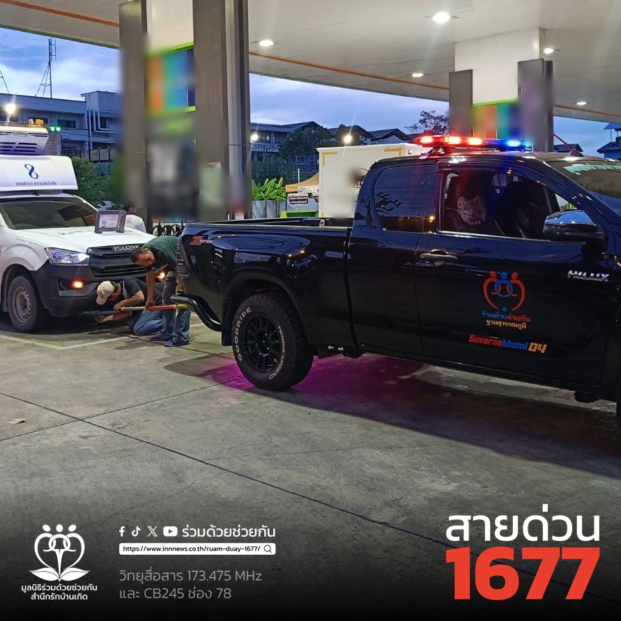 อาสาร่วมด้วยฯ ช่วยลากรถไปยังปั๊ม เติมน้ำมันเชื้อเพลิงเรียบร้อย รถสตาร์ทติดเดินทางต่อไปได้