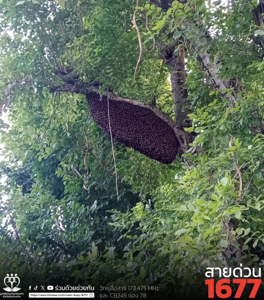 คุณเชาวลา แจ้งผ่านสายด่วน 1677 ขอความช่วยเหลือให้ช่วยกำจัดรังผึ้ง อยู่บนต้นไม้ภายในหมู่บ้าน ถ.นวมินทร์ ซอย 86 แขวงคลองกุ่ม เขตบึงกุ่ม กรุงเทพฯ ซึ่งเกรงว่าจะเป็นอันตรายกับผู้อาศัยใกล้เคียง