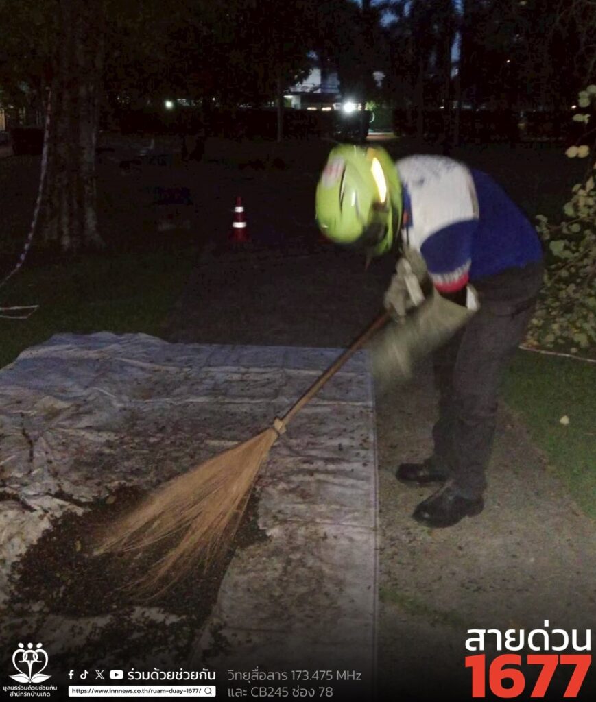 ศูนย์สื่อสารร่วมด้วยช่วยกัน ประสานอาสาร่วมด้วยคุ้มภัย 006,038 เข้าช่วยเหลือ พบเป็นรังผึ้งหลวงจำนวน 1 รัง ทำรังอยู่บนต้นไม้ความสูง 5 เมตร ภายในสวนสาธารณะของหมู่บ้าน อาสาร่วมด้วยได้นำอุปกรณ์เข้าช่วยเหลือ ทำการกำจัดรมควัน และเก็บกวาดเคลื่อนย้ายออกนอกพื้นที่ให้เป็นที่เรียบร้อย ประชาชนปลอดภัย