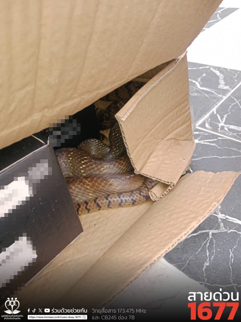 กลัวงู! งูสิงอยู่ในกล่อง ซอยเลียบคลองสอง 23 อาสาร่วมด้วยเร่งช่วยเหลือ