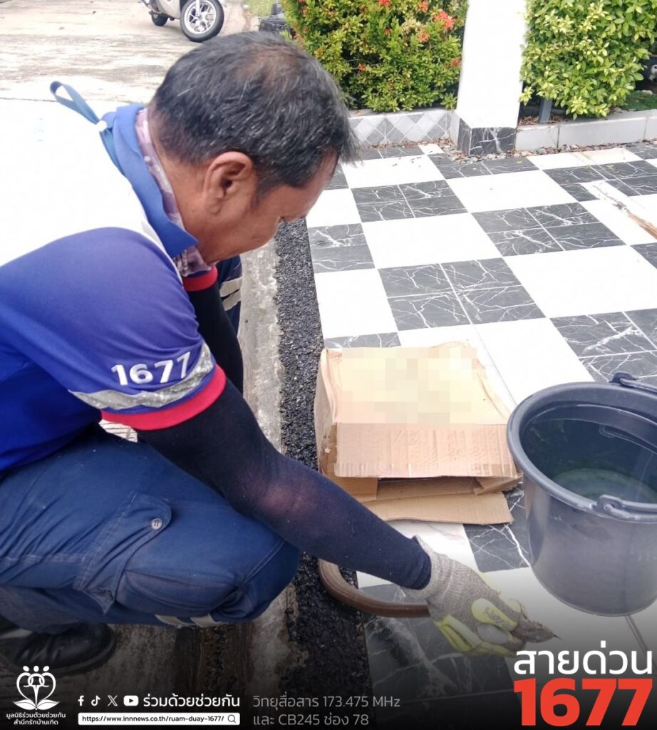 อาสาร่วมด้วยช่วยกัน รับแจ้งจากประชาชนขอความช่วยเหลือจับสัตว์เลื้อยคลาน ซ่อนตัวอยู่ในกล่องกระดาษ บริเวณบ้านพัก ซอยชมนาด 11 ถนนเลียบคลองสอง ซอย 23 แขวงบางชัน เขตคลองสามวา กรุงเทพฯ