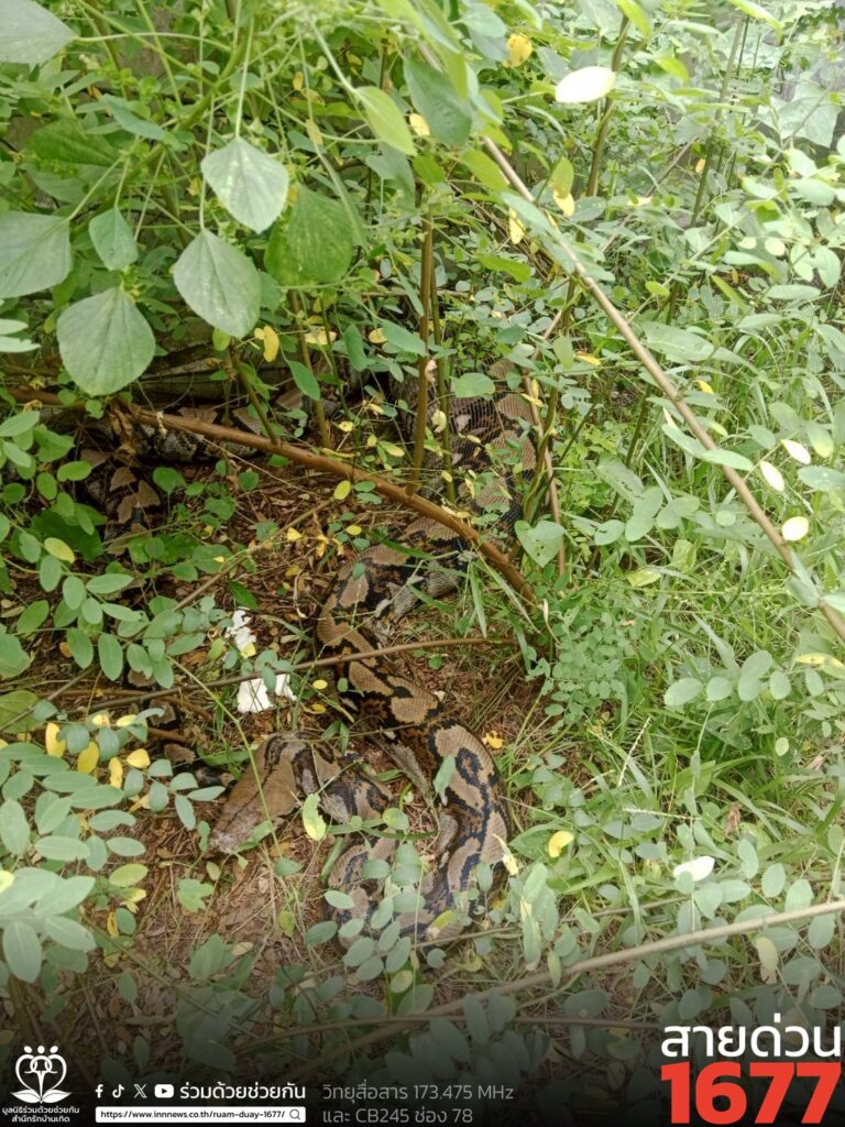ตกใจ! งูเหลือมท้องป่องซ่อนตัวในพงหญ้าหลังบ้าน ซอยกาญจนาภิเษก 5/7 อาสาร่วมด้วยเร่งช่วยเหลือ