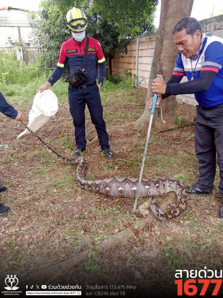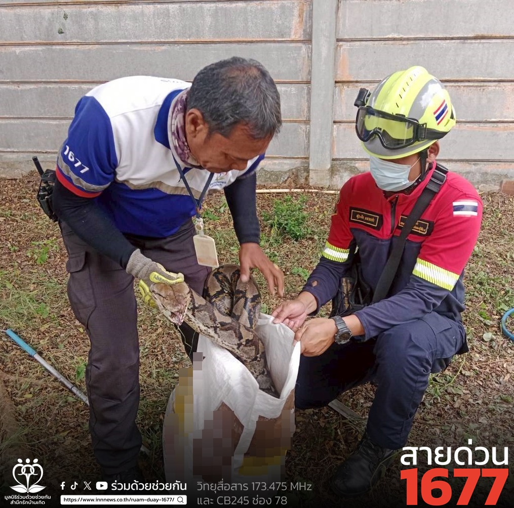 ประชาชนขอความช่วยเหลือให้ช่วยจับงูเหลือม ซอยกาญจนาภิเษก 5/7 อาสาร่วมด้วยเข้าช่วยเหลือจับงูไว้ได้เป็นที่เรียบร้อย