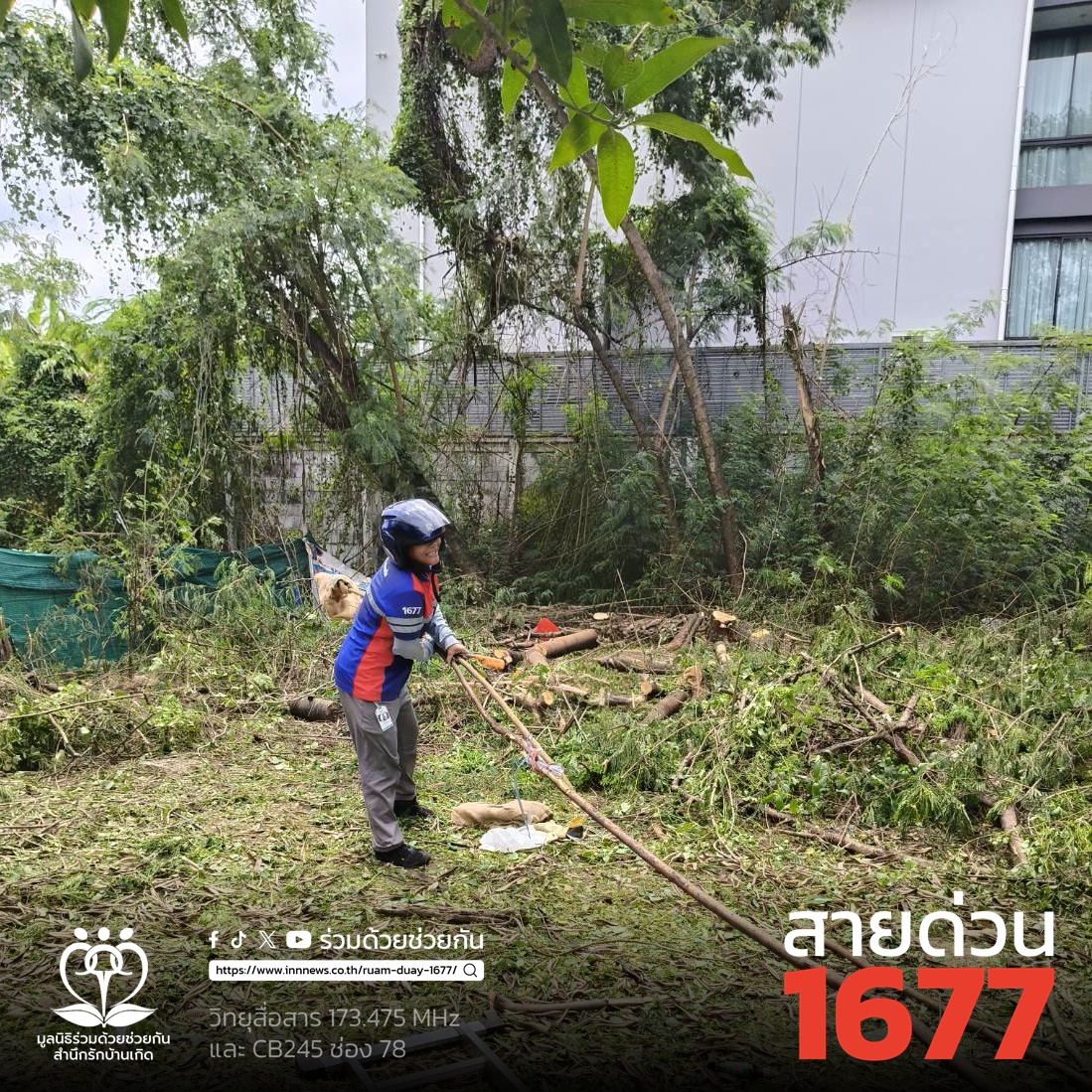 อาสาร่วมด้วยช่วยกันเดินทางเข้าไปตรวจสอบ พบว่าผึ้งหลวงทำรังบนต้นไม้ริมกำแพง จึงนำอุปกรณ์จุดไฟรมควันไล่ผึ้งออกจากรัง ก่อนเคลื่อนย้ายออกจากพื้นที่เรียบร้อย