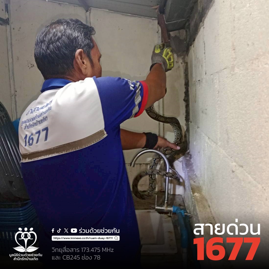 งูเหลือมซุกห้องครัว เจ้าของบ้านผวา แจ้งอาสาช่วยจับปล่อยป่า