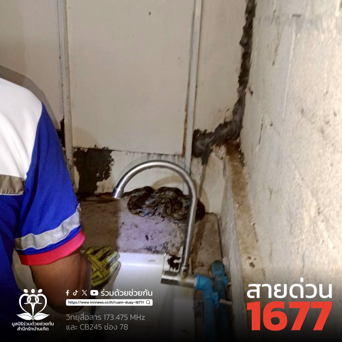 อาสาร่วมด้วยช่วยกันตรวจสอบ พบงูเหลือมอยู่ในห้องครัว จึงช่วยจับตัวไว้ได้ ก่อนนำไปปล่อยคืนธรรมชาติต่อไป