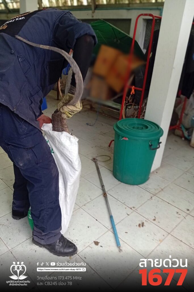 รับแจ้งจากคุณเรวดี ขอความช่วยเหลือจับตัวเงินตัวทองขนาดใหญ่ บริเวณซอยรามอินทรา 18 ถนนรามอินทรา แขวงท่าแร้ง เขตบางเขน กรุงเทพฯ ศูนย์สื่อสารร่วมด้วยช่วยกัน ประสาน อาสาร่วมด้วยคุ้มภัย 006 ตรวจสอบ พบตัวเงินตัวทองอยู่ใต้ชั้นวางของ จำนวน 1 ตัว อาสาฯดำเนินการใช้อุปกรณ์จับได้สำเร็จ พร้อมนำปล่อยธรรมชาติต่อไป