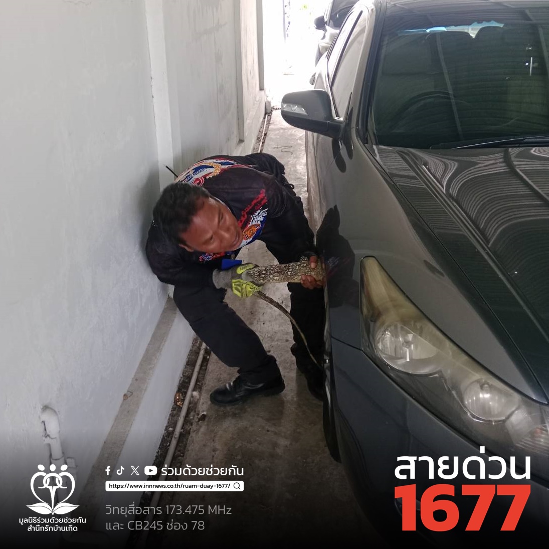 รับแจ้งจากประชาชนขอความช่วยเหลือ มีตัวเงินตัวทองซุกอยู่ในซุ้มล้อรถยนต์ จอดอยู่ภายในบ้าน ซอยนิมิตใหม่ 9 แขวงบางชัน เขตคลองสามวา กรุงเทพฯ