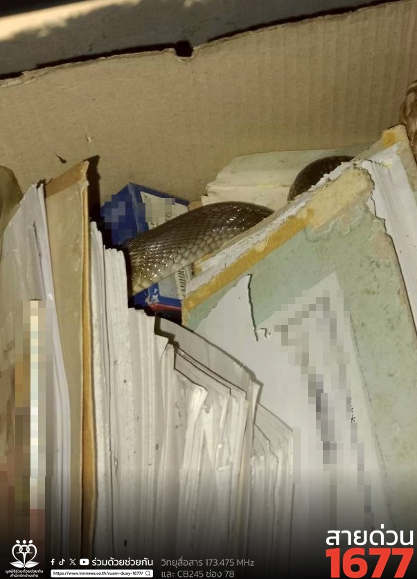 ศูนย์สื่อสารร่วมด้วยช่วยกัน ประสานอาสาร่วมด้วยคุ้มภัย 006 เข้าช่วยเหลือ พบเป็นงูเห่าจำนวน 1 ตัว ความยาวประมาณ 1 เมตร หลบซ่อนตัวอยู่ในกล่องกระดาษ ในห้องครัวภายในบ้านพัก จึงใช้อุปกรณ์เข้าคล้องจับตัวงูเอาไว้ได้เป็นผลสำเร็จ และนำไปปล่อยคืนสู่ธรรมชาติเป็นที่เรียบร้อย