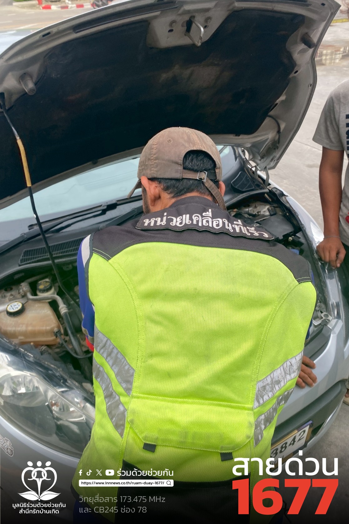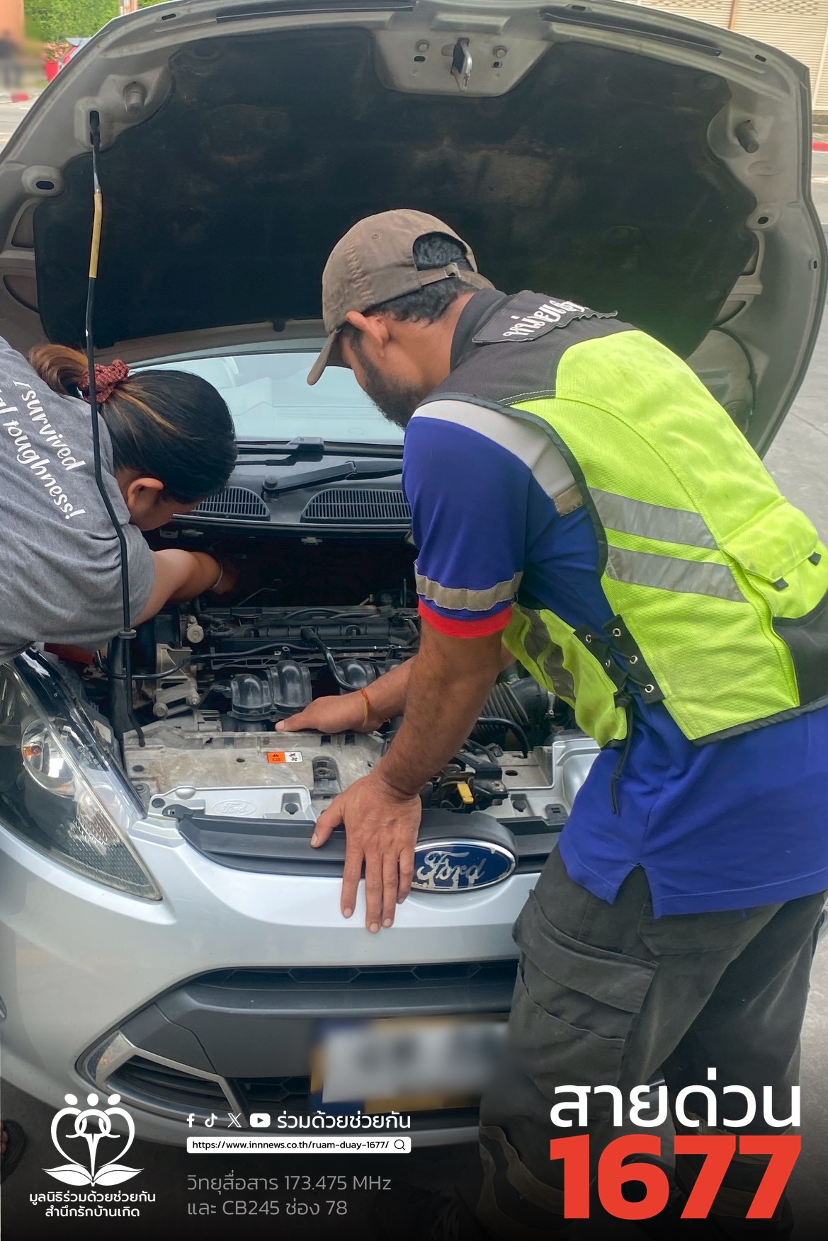อาสาร่วมด้วยช่วยกันเดินทางเข้าไปตรวจสอบ พบว่าระบบไฟฟ้าในรถยนต์มีปัญหา เข้าเกียร์ไม่ได้ อาสาช่วยแก้ไขให้ในเบื้องต้น สามารถเดินทางต่อไปได้