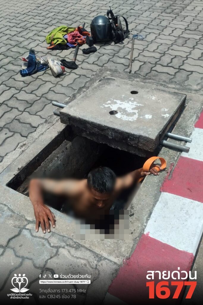 รับแจ้งโทรศัพท์มือถือตกท่อระบายน้ำ บริเวณตรงข้ามชุมชนสวนอ้อย ถนนริมทางรถไฟสายเก่า