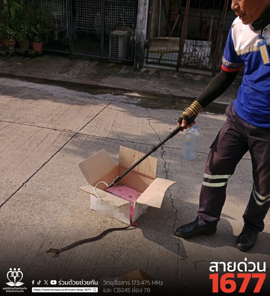 ประชาชนโทร.1677 ขอความช่วยเหลือให้ช่วยจับงูเห่า ซอยพระยาสุเรนทร์ 40 ร่วมด้วยช่วยกันประสานอาสาร่วมด้วยช่วยจับไปปล่อยป่า