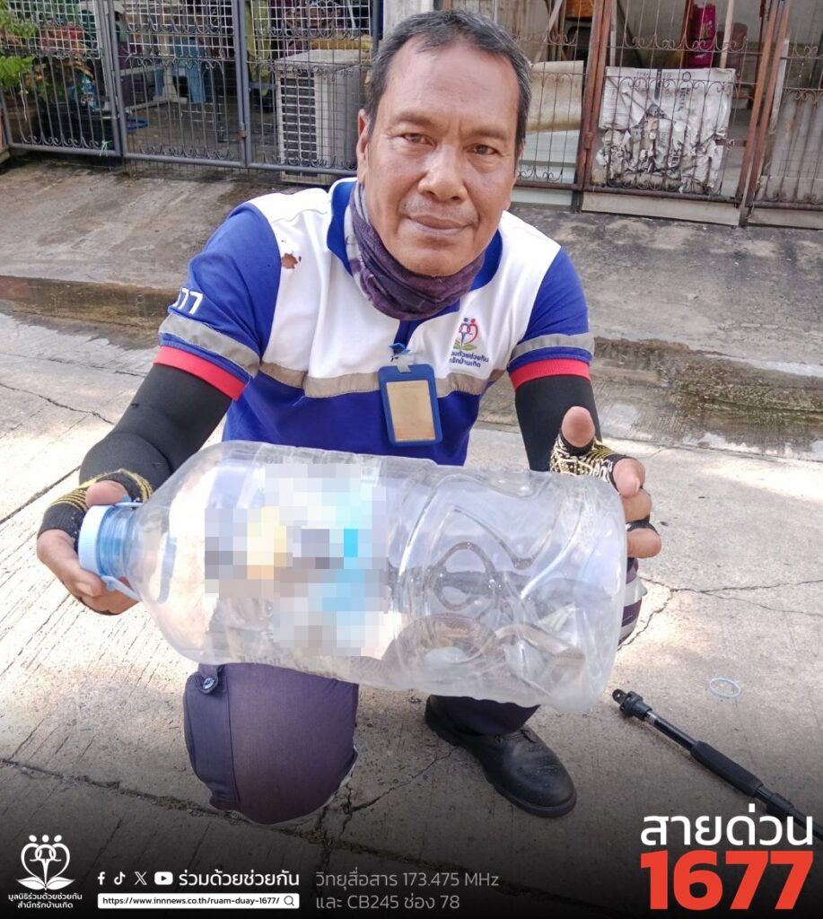 ศูนย์สื่อสารร่วมด้วยช่วยกัน ประสานอาสาร่วมด้วยคุ้มภัย 006 เข้าช่วยเหลือ พบเป็นงูเห่าจำนวน 1 ตัว ความยาวประมาณ 1 เมตร หลบซ่อนตัวอยู่ในกล่องกระดาษ อยู่ภายในที่พักอาศัย จึงลากกล่องกระดาษออกมาข้างนอกบ้าน และใช้อุปกรณ์เข้าคล้องจับตัวงูเอาไว้ได้เป็นผลสำเร็จ พร้อมนำใส่ขวด และนำไปปล่อยคืนสู่ธรรมชาติเป็นที่เรียบร้อย