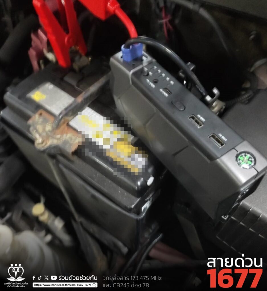 รถแบตหมด ไปต่อไม่ได้ โทร.1677 ร่วมด้วยช่วยกัน พร้อมประสานอาสาร่วมด้วยเข้าช่วยเหลือ
