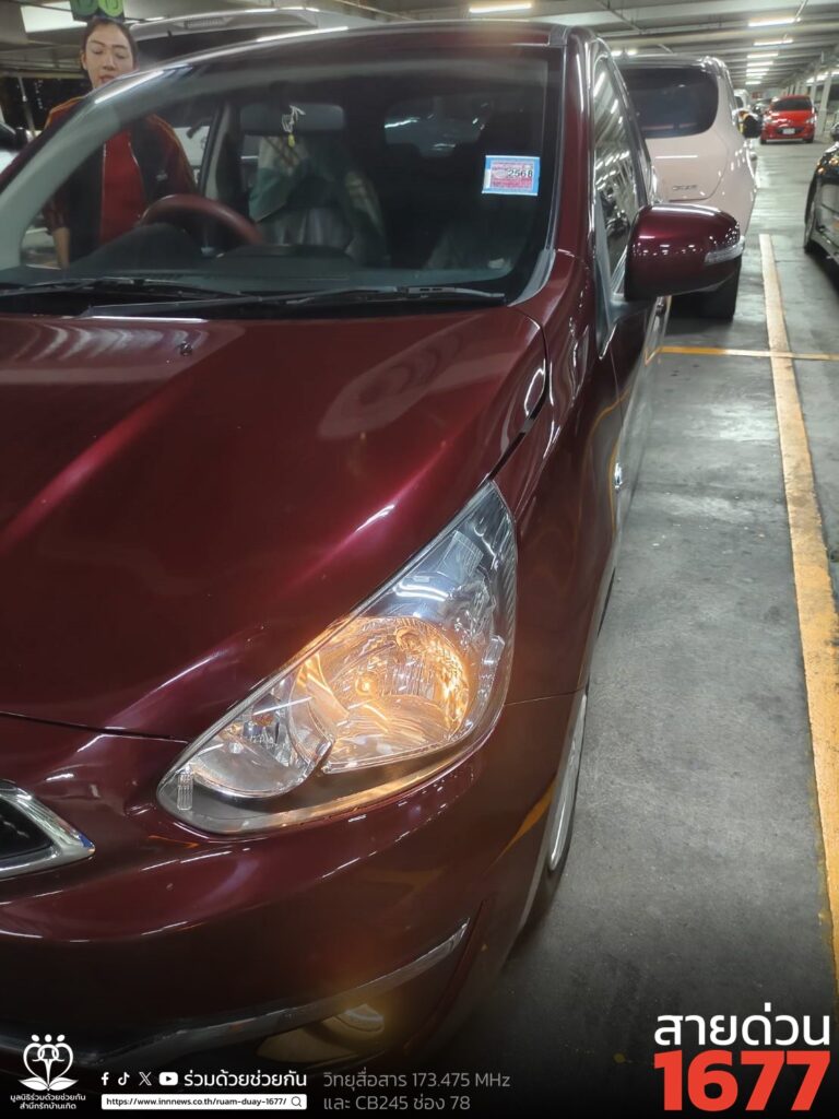 คุณน้ำ แจ้งผ่านสายด่วน 1677 ขอความช่วยเหลือ รถแบตหมด สตาร์ทไม่ติด เป็นรถยนต์มิตซูบิชิ มิราจ สีแดง จอดอยู่ลานจอดรถห้างบิ๊กซี ถนนพระราม 4 เขตคลองเตย กรุงเทพฯ