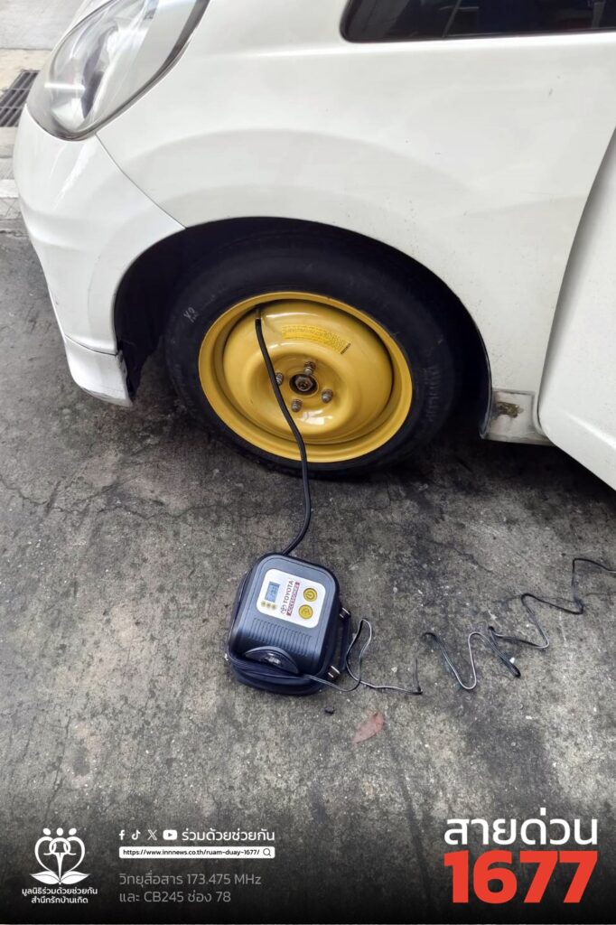 รับแจ้งจากประชาชนขอความช่วยเหลือรถเก๋งยางแตก เป็นรถเก๋งฮอนด้า สีขาว บริเวณหน้าคอนโด ซอยสุขุมวิท 36 ถนนสุขุมวิท แขวงพระโขนง เขตคลองเตย กทม. อาสาร่วมด้วย 347 และ 365 ดำเนินการใช้อุปกรณ์เปลี่ยนล้อยางได้สำเร็จ สามารถขับรถต่อไปได้
