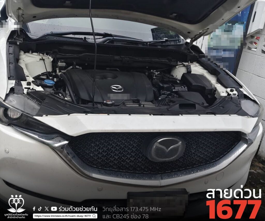 อาสาร่วมด้วยช่วยกัน รับแจ้งจากประชาชนขอความช่วยเหลือ มีลูกแมวเข้าไปติดอยู่ใต้ห้องเครื่องรถ ส่งเสียงร้องขอความช่วยเหลือ เป็นรถยนต์มาสด้า สีขาว จอดอยู่ถนนรามคำแหง ซอย 24 แยก 20 แขวงหัวหมาก เขตบางกะปิ กรุงเทพฯ