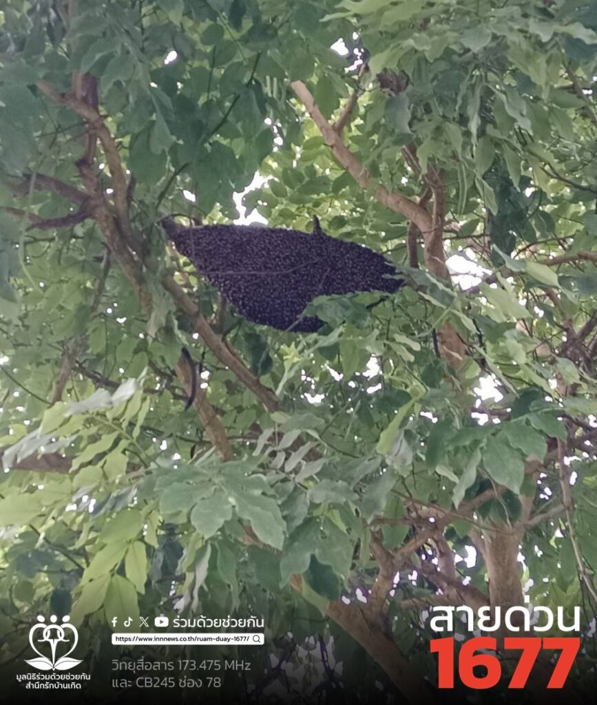 ปล่อยไว้อันตราย! ผึ้งทำรังอยู่บนต้นไม้ภายในสนามเด็กเล่น แจ้งอาสาร่วมด้วยช่วยกำจัด