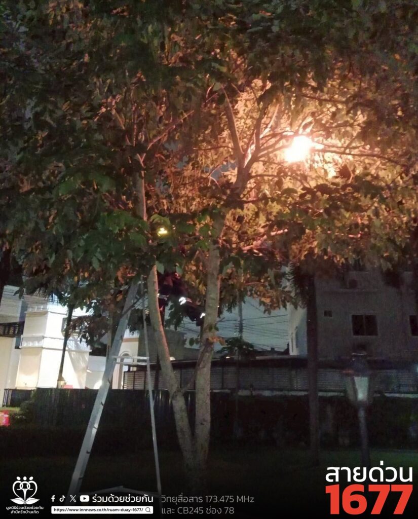 อาสาร่วมด้วยช่วยกัน รับแจ้งจากประชาชนขอความช่วยเหลือกำจัดสัตว์มีพิษอยู่บนต้นไม้ ภายในสนามเด็กเล่นของหมู่บ้าน ถ.พระยาสุเรนทร์ ซอย 30 แขวงบางชัน เขตคลองสามวา กรุงเทพฯ