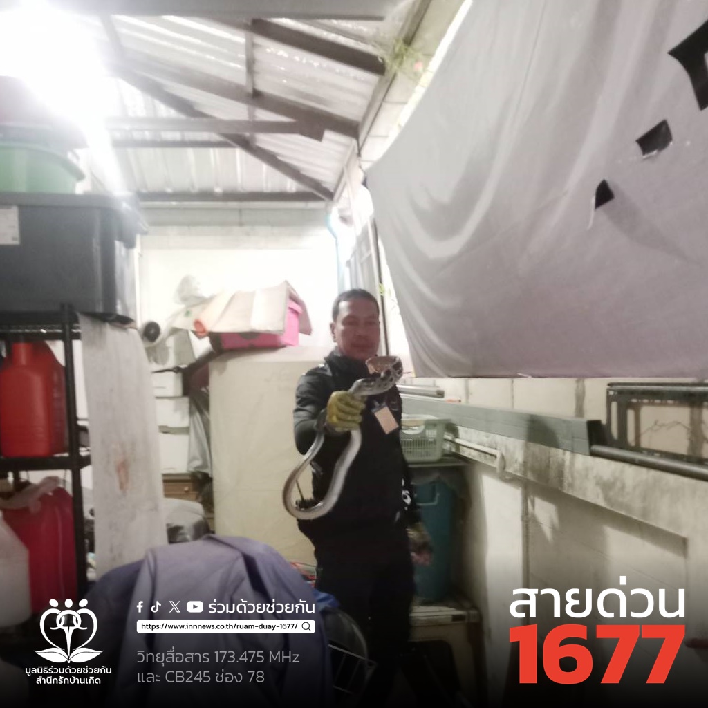 ผวางูซุกบ้าน เจ้าของแจ้งอาสาช่วยจับ