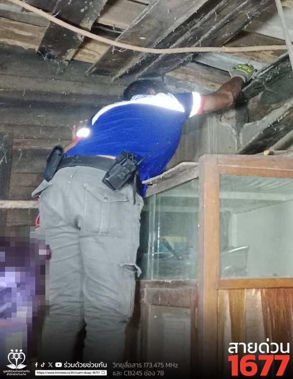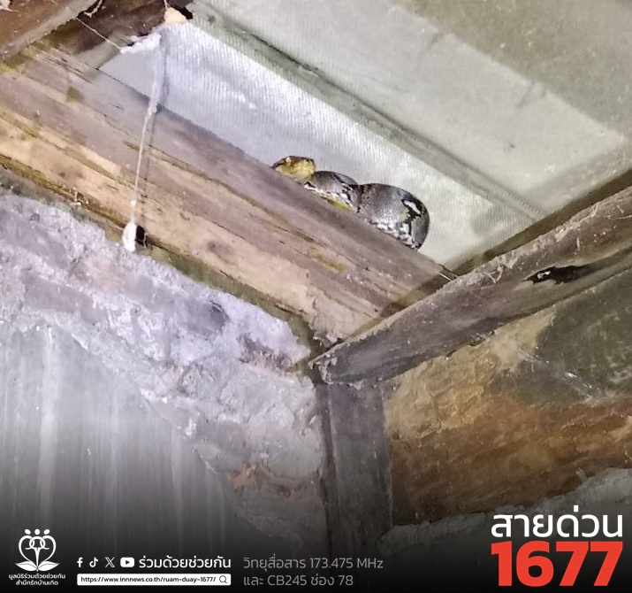 ตกใจ! งูเหลือมอยู่บนขื่อบ้าน ถ.สีหบุรานุกิจ อาสาร่วมด้วยเร่งช่วยเหลือ