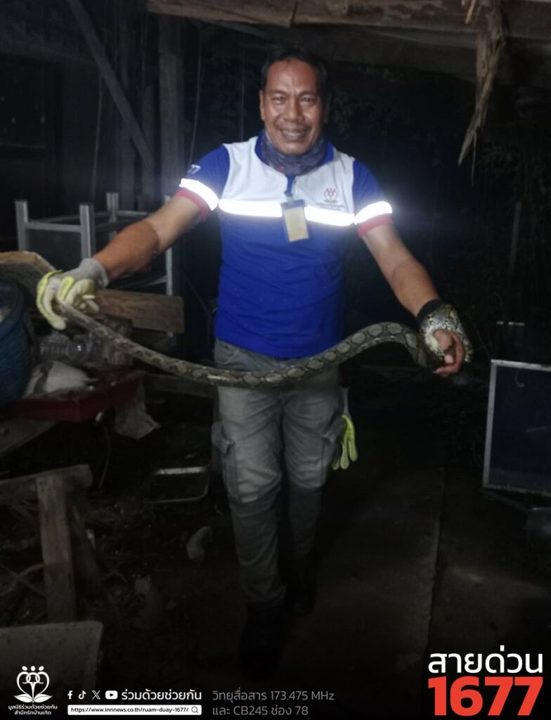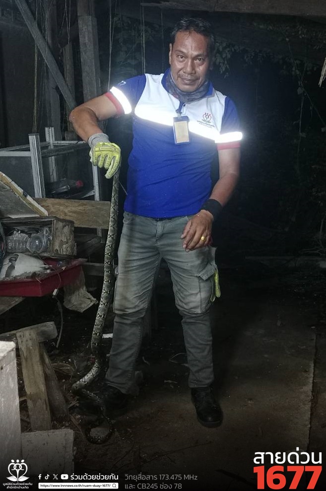 ประชาชนขอความช่วยเหลือให้ช่วยจับงูเหลือม ถ.สีหบุรานุกิจ อาสาร่วมด้วยเข้าช่วยเหลือจับงูไว้ได้ และนำไปปล่อยป่าเป็นที่เรียบร้อย