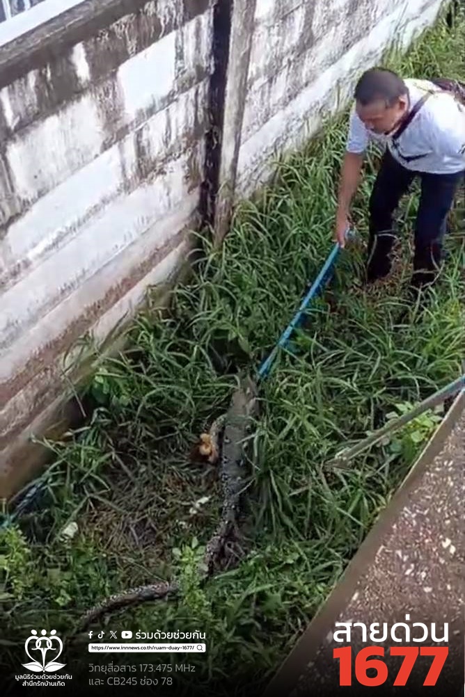 ช่วยจับงูเหลือมข้างกำแพงบ้าน ถนนสุขสวัสดิ์