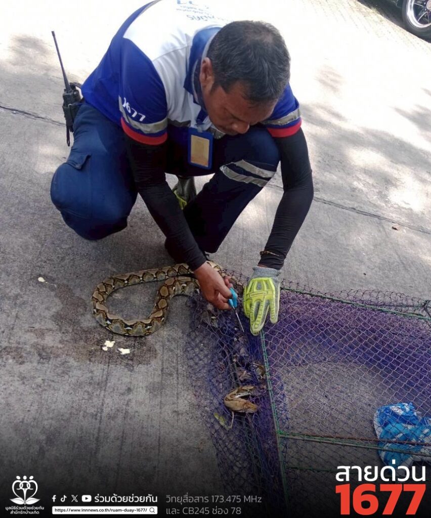 ตกใจ! งูเหลือมติดตาข่าย ร้องอาสาร่วมด้วยเข้าช่วยเหลือ